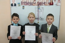 Поздравляем учеников 3 Б класса (Портнова Никиту, Валиуллова Динара, Тарасову Алесю, учитель Зиятдинова НВ.) за участие и победу в Открытой российской математической интернет - олимпиаде школьников "Осень, октябрь 2015 г., математика, 3 класс". Желаем дальнейших успехов и побед.