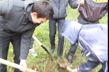 Стартовала акция «Зеленый рекорд». Каждый класс посадил свое дерево на территории школы.