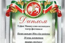 Театральный коллектив школы был награжден дипломом за участие в фестивале имени Т.Миннуллина. Поздравляем участников и учителей. Ждем дальнейших успехов.