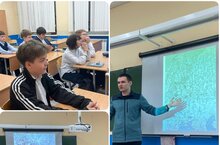 Россия студентлары көне алдыннан безнең мәктәп Россиянең әйдәп баручы югары уку йортларының берсе А.Н.Туполов исемендәге Казан милли тикшеренү техник университеты-КАИ студентларын кабул итте. Кунаклар 2 курс студентлары булды, алар “Крылья Ростеха" программасы турында җентекләп сөйләделәр һәм 10-11 сыйныф укучыларының барлык сорауларына җавап бирделәр. Очрашу бик файдалы һәм кызык үтте. -