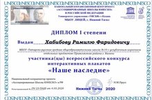 Поздравляем ученика 8а класса Хабибова Рамиля с дипломом I степени Всероссийского конкурса интерактивных плакатов «Наше наследие». Учитель - А.И.Сайманова. Желаем дальнейших успехов!
