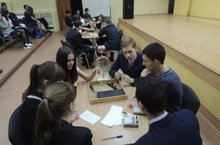 Брейн ринг в рамках школьных мероприятий Недели естественно-математических наук прошел в 9б и 9в классах (ответственный учитель математики - Штырова Р.М.). Участникам команд предлогались не только занимательные задачи, но и вопросы из истории математики. В общем зачете большее количество очков получила команда 9б класса!