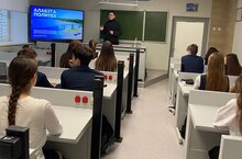 Сегодня в гимназии прошла встреча учащихся с представителями колледжа «Алабуга Политех». Это крупнейший производственно- образовательный центр по подготовке будущих предпринимателей с 2019 года. Представитель познакомил учащихся 9-х классов с условиями обучения в колледже, в котором применяется особенная дуальная программа обучения, рассказал о нагрузке и карьерном росте студентов.