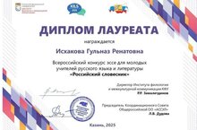 Институт филологии и межкультурной коммуникации Казанского (Приволжского) федерального университета и Молодёжное крыло Ассоциации учителей литературы и русского языка провели Всероссийский конкурс эссе для молодых учителей-филологов «Российский словесник». Конкурс был посвящён 180-летию со дня рождения выдающегося учёного-лингвиста, основателя Казанской лингвистической школы Ивана Александровича Бодуэна де Куртенэ и 190-летию Высшей школы русской филологии и культуры имени Льва Толстого. В этом году участники со всей страны писали эссе на тему: «Язык, как и вся природа, вечно движется, вечно меняется…» (И.А. Бодуэн де Куртенэ) — размышляя о том, как эта мысль проявляется в практике современного учителя русского языка и литературы. Учитель русского языка и литературы нашей гимназии Исхакова Гульназ Ренатовна стала лауреатом конкурса! Это заслуженное признание высокого профессионализма и творческого подхода к слову. Поздравляем Гульназ Ренатовну!