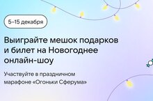 Сферум запускает всероссийский новогодний марафон «Огоньки Сферума» – онлайн-соревнование для работников сферы образования, школьников, участников и преподавателей творческих коллективов. Марафон пройдет в период с 5 по 15 декабря. Инициатива поможет подготовиться к Новому году и создать праздничное настроение, а самые активные команды получат призы. 20 декабря для всех участников состоится новогоднее онлайн-шоу. Далее: