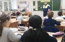 Перед скорым выходом учащихся на каникулы перед ребятами 1-4 классов выступил инспектор ГИБДД Трифонов Р.Ю.