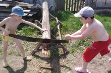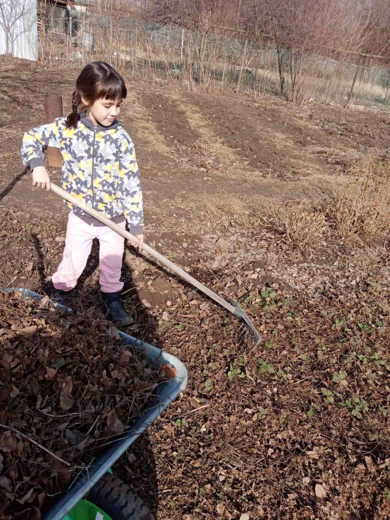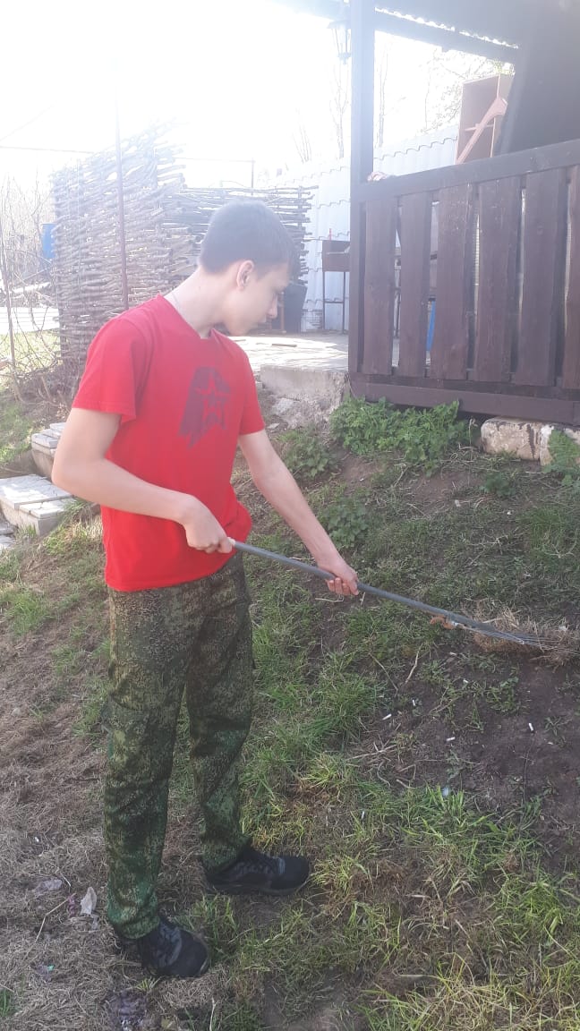 На фото: Шакиров Ильяс (4 класс) помогает дедушке.