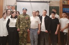 На встречу с ребятами на урок мужества пришел выпускник школы, участник СВО Ильин Эдуард. Он выразил благодарность учителям,признательность ребятам за их письма, подарки. Эдуард охотно беседовал с ребятами разных классов, рассказал за какие подвиги награжден двумя орденами мужества, интересовался современной жизнью школы, побывал в школьном музее боевой, трудовой и школьной славы.