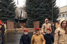 Сегодня в рамках месячника младшие юнармейцы под руководством своего учителя Сахеевой Алсу Нигматовны участвовали в возложении цветов к памятнику в Казанском танковом училище.