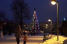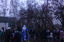 Зажглась новогодняя елочка в микрорайоне. Играми, стихами и песнями в хороводе встретили мальчишки и девчонки, а также их родители приход Деда Мороза, Снегурочки и сказочных героев.