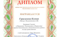Поздравляем Герасимову Ксению, ученицу 2 класса, занявшую 1 место в Открытом Чемпионате и Первенстве г.Зеленодольска по ушу.