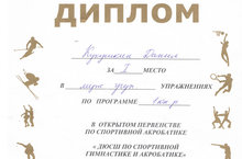Поздравляем Кукушкина Данила, ученика 3 класса, занявшего 1 место в открытом первенстве городов России по спортивной акробатике.