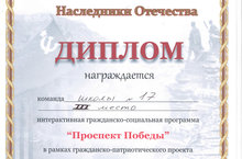 Поздравляем команду школы из числа учащихся 10 класса, занявшую 3 место в районной интерактивной гражданско-социальной программе "Проспект Победы" в рамках гражданско-патриотического проекта "Наследники Отечества". Молодцы!