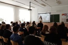 С ребятами 8-9 классов Сафина Эльмира Руслановна ,заведующая библиотекой ДК Отар ЦБС г.Казани, провела занятие по Пушкинской карте на тему "Женщины на фронте в период Великой Отечественной войны. Ночные ведьмы".