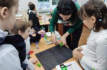 С учащимися 3 класса библиотекарем ДК пос.Отар проведено библиотечное занятие по изготовлению новогодней открытки.