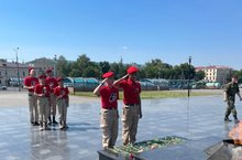 В день памяти юнармейцы и члены ВПК "Пламя" возложили цветы к Вечному огню у парка им.М.Горького.