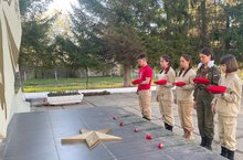 В этот праздничный день ребята возложили цветы к обелиску в честь павших земляков. -