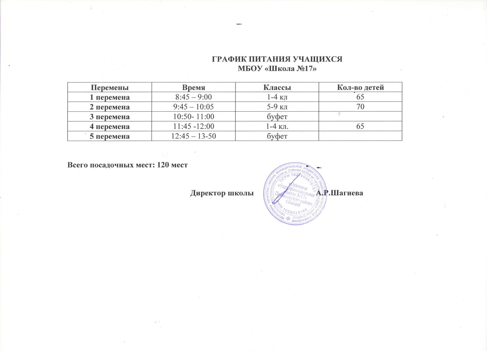 Курирующий вопросы организации питания: Кукушкина Диана Фаруковна