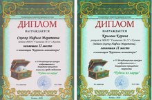 Поздравляем Скичко Нафису Маратовну, учителя ИЗО и Крылову Карину, ученицу 9б класса, занявших II место в номинации «Картины-миниатюры» III Республиканского конкурса изобразительного и декоративно-прикладного творчества «Чудеса из ларца».