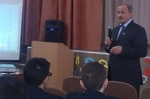 С целью формирования правовой культуры учащихся, обеспечения прав и законных интересов детей, распространения и углубления знаний о правах и свободах граждан, развития навыков активного участия в социально-политической жизни общества, 18 ноября в гимназии был проведен Парламентский урок - 2014 по теме: "Здесь рождаются законы", приуроченный к 20-летию Государственного Совета Республики Татарстан. Урок провела учитель истории и обществознания Франк Наталья Николаевна. Она рассказала учащимся 8-9 классов о том, что такое закон, напомнила о конституции, показала презентацию по теме: "Где рождаются законы", познакомила со структурой Государственного Совета РТ. Почетным гостем урока стал депутат Государственного Совета РТ Рахимов Марат Муллахмедович, который рассказал о себе, своей работе, о том, как проходят заседания Госсовета, ответил на вопросы ребят и показал фильм по теме урока.
