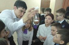 22 апреля, в Международный день Земли, в рамках профориентационной работы, для учащихся 6-х классов прошла лекция "Способы очистки воды". Провел мероприятие Петров Евгений Сергеевич, доцент кафедры ХТОСА (химии и технологии органических соединений азота) КНИТУ (КХТИ). Он показал ребятам презентацию с информацией о способах очистки воды и показал опыты, которые вызвали живой интерес у шестиклассников. А многие учащиеся даже подумывают теперь о поступлении в КНИТУ (КХТИ) и хотят связать свою будущую профессию с химие