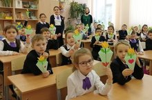Вот такие замечательные праздничные открытки подарили своим мамам и бабушкам ученики начальной школы! А помогли им девочки 6а и 6б классов на творческих мастерских.
