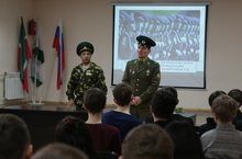 7 марта в актовом зале гимназии состоялась встреча с представителями организации "Пограничники Татарстана" Р. Махмутовым и Р. Хатмуллиным. Ветераны-пограничники поведали учащимся о службе в пограничных войсках, о важности собственной позиции, ответили на вопросы учащихся, а также поделились сегодняшними успехами в сфере ветеранского движения пограничников.