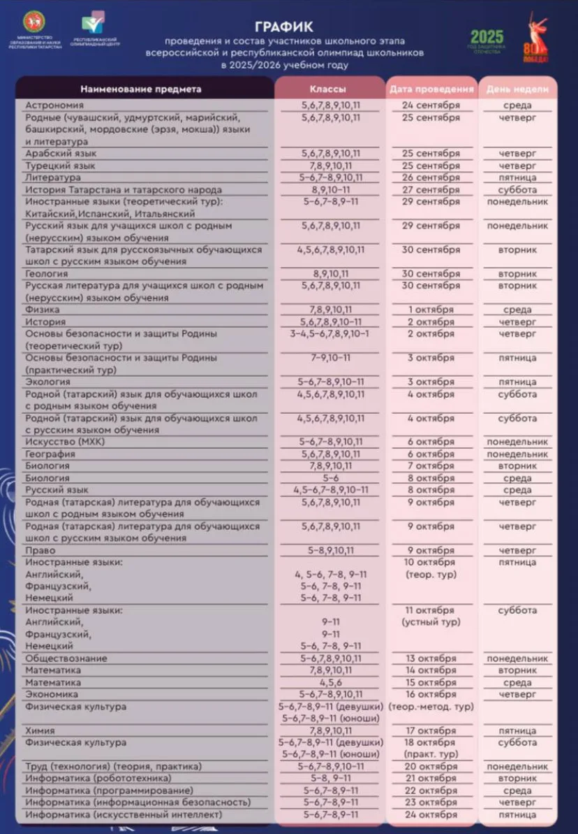 Школьный этап Всероссийской и Республиканской олимпиады школьников 2025-26 учебного года!