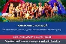 8 июня 2018 года с 10-30 до 12-00 состоится республиканское родительское интернет-собрание с участием Министра образования и науки РТ Бурганова Р.Т. на тему: "КАНИКУЛЫ С ПОЛЬЗОЙ". (Об организации летнего отдыха и развитии детей в летний период). Он-лайн трансляция на сайте киу.рф. Свои вопросы можно задать по адресу: roditelirt@mail.ru