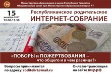 15.12.2017г. приглашаем родителей на Республиканское родительское интернет-собрание «Поборы и пожертвования - что общего и в чем разница?».