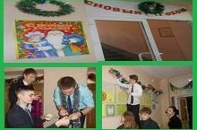 23 декабря ученики старших классов начали оформление школы к новому году. Они украсили гирляндами и плакатами фойе школы, актовый зал, столовую и кабинеты. Теперь в школе царит предновогодняя атмосфера.