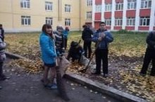 В школе идет месячник по уборке и озеленению закрепленных территорий. Все классы принимают активное участие.