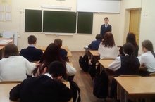 В рамках профориентационной работы 2 февраля состоялась встреча учащихся 8-11 классов со студентом 2 курса МГУ. Он рассказал учащимся 8-11 классов про образовательную онлайн-платформу "ФОКСФОРД". Учащиеся 8-11 классов могут вести подготовку к олимпиадам и ОГЭ/ЕГЭ через предложенную онлайн- платформу.