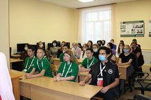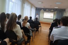 Сегодня состоялся "профориентационный классный час", который провели студенты 2х и 3х курсов Казанского педагогического колледжа, Российского института театрального института "Гитис", Казанского федерального университета. Учащимся 8х классов рассказали о высших учебных заведениях, о способах поступления и о специальностях которым там обучают. Более подробно ученики узнали о таких профессиях как юрист, педагог, актёр, журналист, строитель.