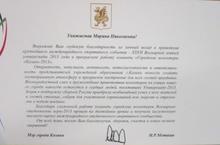 Поздравляем! Евсееву Марину Николаевну с вручением ей грамоты мэра г. Казани И.Р.Метшина “За большой личный вклад в проведение Всемирной летней Универсиады и прекрасную работу команды городских волонтеров – 2013” по гимназии №52. Уважаемая Марина Николаевна! Желаем Вам здоровья, дальнейших творческих успехов, активной гражданской позиции.