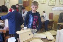 В гимназии на уроках технологии под руководством педагога Харитонова С.К., при участии представителей организации «Казгорсеть» в рамках акции «Казань – наш общий дом», проводимой организацией «Казгорсеть», ребята-пятиклассники мастерят скворечники, которые будут вывешены в школьном саду.