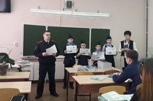 Инспектор отдела по пропаганде ПДД капитан полиции Раскатов А.В. провел беседу с учащимися 8 класса по теме "световозвращающих элементов"