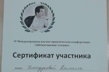 12.12 2018 в МАОУ "Лицей 121 имени Героя Советского Союза С.А.Ахтямова Советского района г.Казани прошла lV Международная научно-практическая конференция "Айтматовские чтения".В этой конференции в секции "Чтение прозы"приняла участие Илендукова Камилла ученица7а класса.(научный руководитель Марданова Э.Ш учитель истории)
