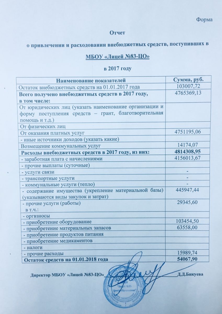 Отчет о привлечении и расходовании внебюджетных средств 2017
