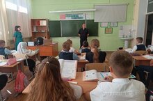 9 сентября, сотрудники отдела пропаганды ГИБДД, Хайруллина С.С и Гостев М.С провели беседы с учащимися начальной школы на тему: "Дорога без опасностей".