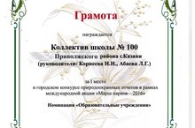 Наша школа победила в городском конкурсе природоохранных отчетов в рамках международной акции "Марш парков - 2016"