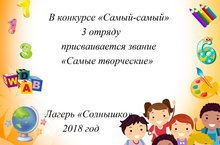 30 мая 2018 года в летнем пришкольном лагере "Солнышко" среди детей прошли различные конкурсы, по итогам которых командам были присвоены различные звания в категориях "Самый-самый...".