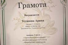 Спешим поздравить нашу ученицу 11А класса Устинову Арину с победой в городском открытом конкурсе рисунка школьников 3-11 классов "Животный мир глазами детей", проведённым совместно с Зоологическим музеем им. Э.А. Эверсмана ФГАОУ ВО "Какзанский (Приволжский) Федеральный Университет". I место - звучит гордо! Поздравляем с яркой и достойной победой! Молодец! Желаем продолжать в том же духе, не останавливаться на этом и с каждым разом добиваться своей победы еще быстрее и увереннее. Удачи, упорства и творческого вдохновения!