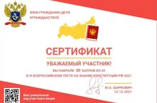 Сегодня, 12 декабря в честь 28-ой годовщины со дня принятия Конституции обновленной России, учащиеся 6-11 классов школы 114 города Казани вместе со своим учителем обществознания Нигматуллиной К.И., не смотря на выходной воскресный день, активно принимают участие в тесте на знание основного закона нашей страны - Конституции.