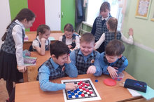 В 3 четверти в рамках экологического воспитания, ученики 2 "В" класса изготовили шашки из подручных материалов и теперь с удовольствием играют на перемене.