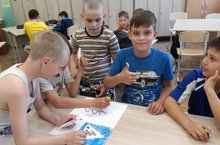 Сегодня третий день пришкольного летнего лагеря "Веснушки". День как обычно начался с утренней зарядки, после которой ребята разошлись по своим отрядам и участвовали в конкурсе "Волшебный светофор". Ребята повторили Правила дорожного движения, раскрашивали дорожные знаки на интерактивной доске, участвовали в конкурсах и собирали сигналы волшебного светофора, а также читали стихотворения. За активное участие в программе ребята получили призы.