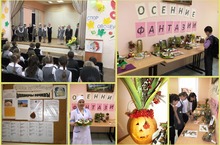 В школьной столовой в этот день также был «овощной день», ребята могла приобрести фруктово-овощные блюда. Кроме того, на 1 этаже действовала выставка «Осенние фантазии», ребята из природного материала мастерили поделки, аппликации.