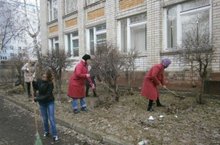 22 апреля прошел средник. Учителя убирали территорию школы.