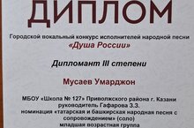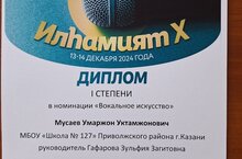 Поздравляем Мусаева Умарджона с Дипломом 1 степени Международного конкурса- фестиваля речевого и вокального искусства "Илhамият Х", руководитель Гафарова З.З.