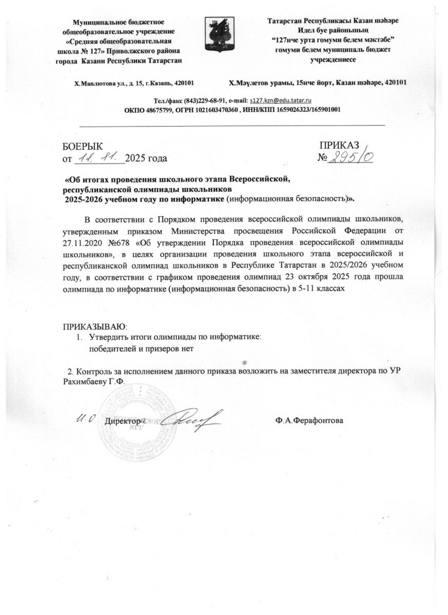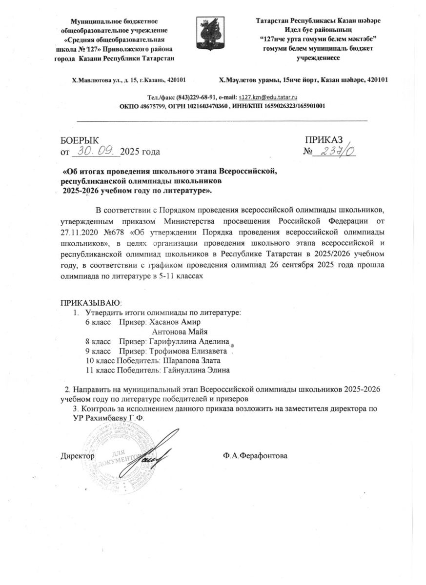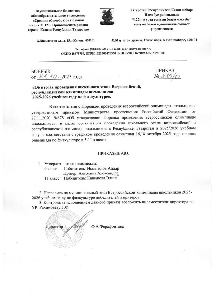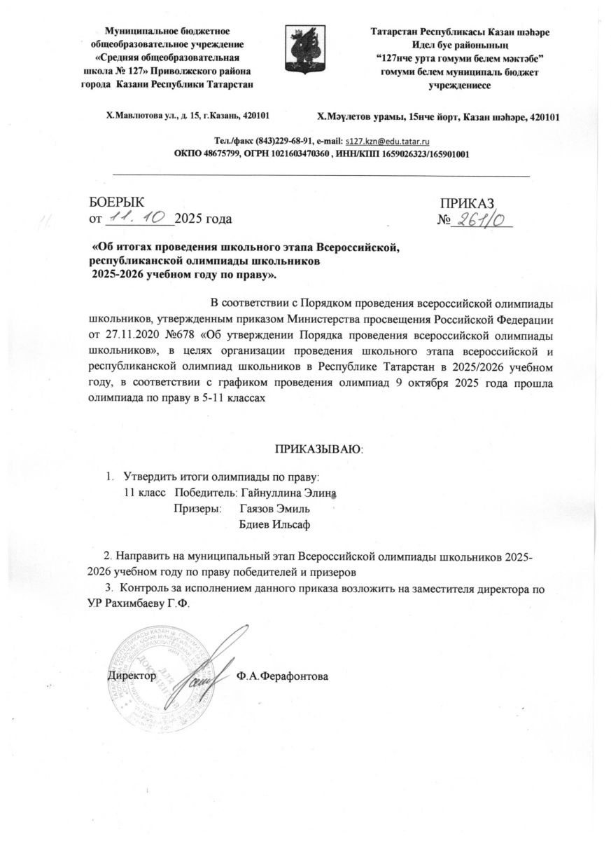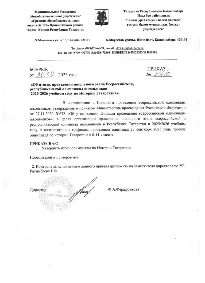 Муниципальное бюджетное общеобразовательное учреждение "Средняя общеобразовательная школа №127" Приволжского района города Казани